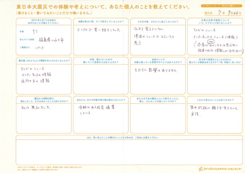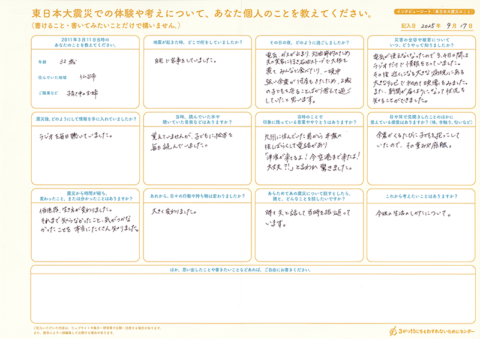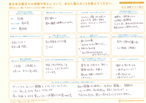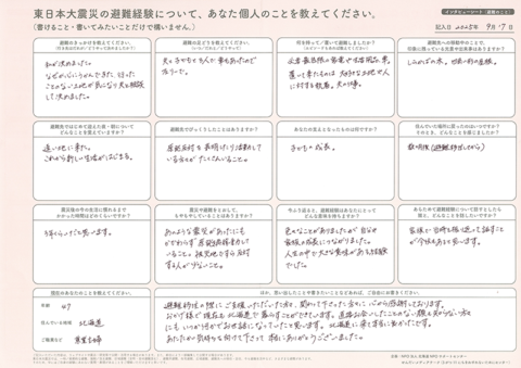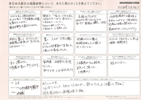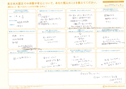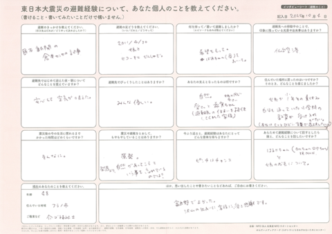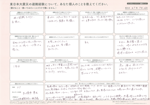 インタビューシート(避難のこと)の内容
